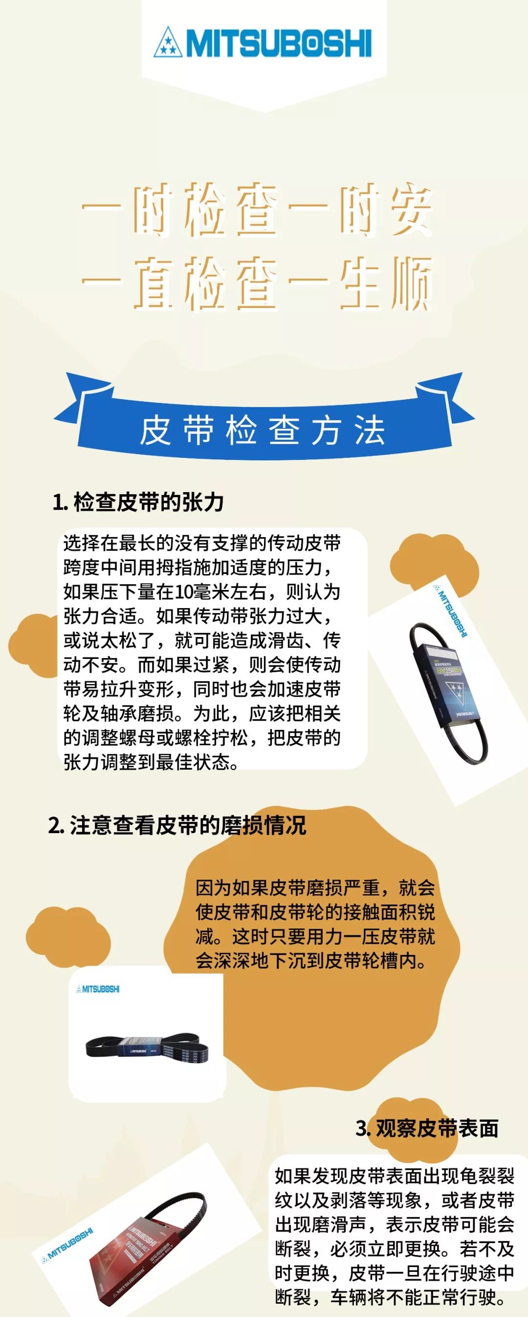 車與人一樣,剛買的新車就像初生的嬰兒,但是每多用一年車,就會多出一份危機感,究其原因都是在擔心車是否滿足出行指標,而其中皮帶又是影響指標的一個重要因素。汽車的傳動皮帶負責帶動所有機件的運動,發(fā)動機通過皮帶傳動驅動各種輔助機構運轉。隨著使用年限的增長,皮帶也可能會出現中年危機,例如斷裂或打滑,這將使相關的輔助機構喪失功能,或使其性能下降,影響到汽車的正常使用。因此,定期檢查保養(yǎng)傳動皮帶以遠離中年危機很重要。