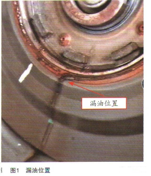 拆下變速器發(fā)現(xiàn),漏油位置在變速器前油封處,如圖1所示。