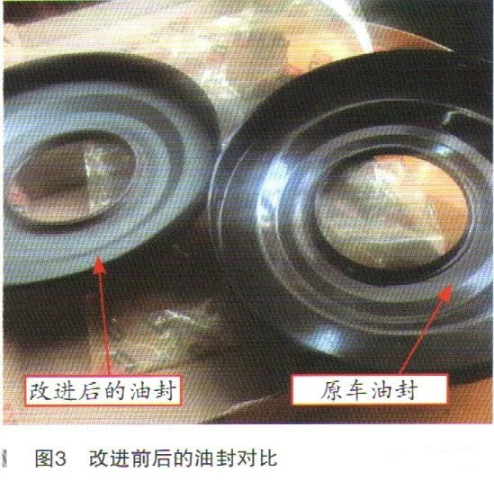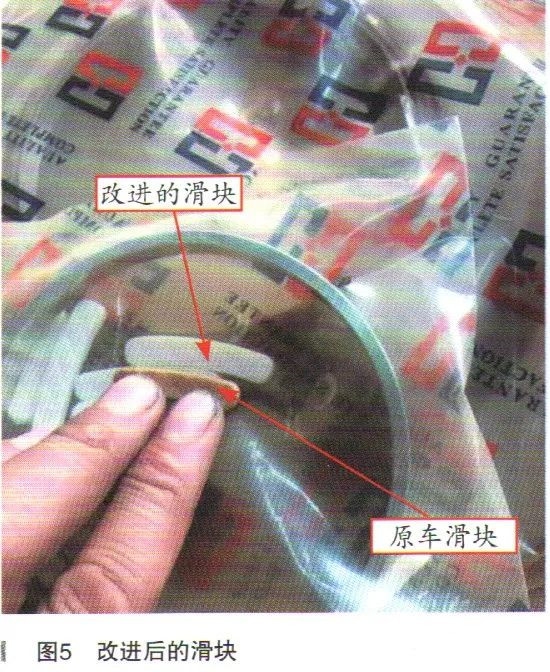 查閱相關(guān)資料,原來這款變速器有技術(shù)通報,說的就是剛才我們檢查的問題,原來這一塊兒有改進的配件。找到配件商,從配件商處拿回來一套進行對比,發(fā)現(xiàn)有三處進行了改進,如圖3所示。