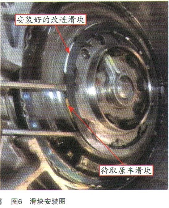 改進后的滑塊明顯變長變厚,如圖5所示。安裝圖如圖6所示。