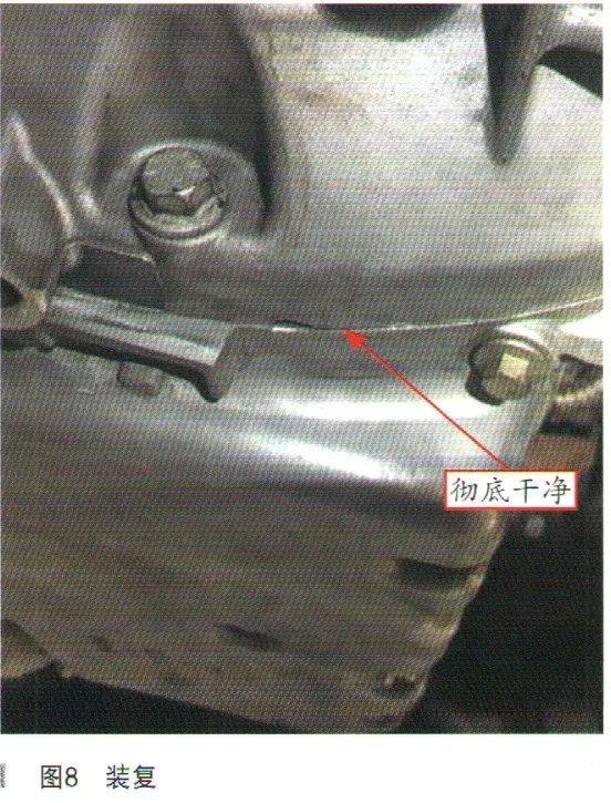 更換好改進套件裝車,來回路試,再次檢查漏油位置,已無油漬,如圖8所示。