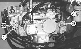 2. 轉(zhuǎn)動(dòng)調(diào)整螺釘 (31) 以便調(diào)整最大輸出流量。順時(shí)針轉(zhuǎn)動(dòng)調(diào)整螺釘 (31) 將減小泵的最