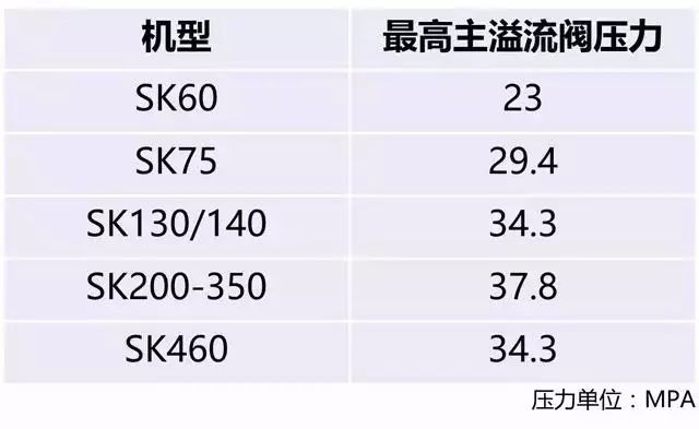 主溢流閥壓力是否正常,可以使用壓力計測定主溢流閥的調(diào)定壓力,以下是神鋼系列機(jī)型主溢流閥壓力的最高壓力值: