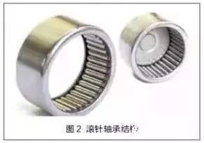 位于傳動(dòng)軸上端的滾針軸承,其僅通過泄漏液壓油進(jìn)行潤(rùn)滑。由于該部位循環(huán)的液壓油量非常少,造成該軸承潤(rùn)滑不良,其內(nèi)部的污染物不能及時(shí)排出。在回轉(zhuǎn)馬達(dá)高速旋轉(zhuǎn)產(chǎn)生的高溫作用下,滾針軸承與污染物之間產(chǎn)生干摩擦,加劇了其磨損。滾針軸承結(jié)構(gòu)如圖2所示。