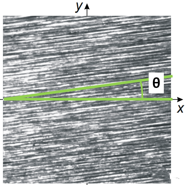 圖4是軸表面螺旋紋的檢測截圖,Y是軸向,X為徑向,θ便是磨削螺旋紋的螺旋角,對于密封區(qū)域的軸表面來說,要求磨削紋為0°,即無螺旋結構,在圖紙上通常以“無表面螺旋紋”或“無進給磨削”來體現。