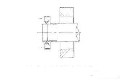 軸上帶有螺紋、溝槽、花鍵時(shí),使用圓錐形軸肩裝配骨架油封密封件無(wú)效,而需要用專用的裝配工具來(lái)保護(hù)骨架油封密封件唇部,即在螺紋、溝槽、花鍵處套一保護(hù)套,避免骨架油封密封件唇部被軸上的尖角、螺紋、溝槽、花鍵等損傷,如圖所示。
