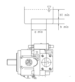 ◆軸向柱塞泵在油箱內(nèi)安裝,低于油箱的最低油位。軸向柱塞泵完全在液壓流體下面。