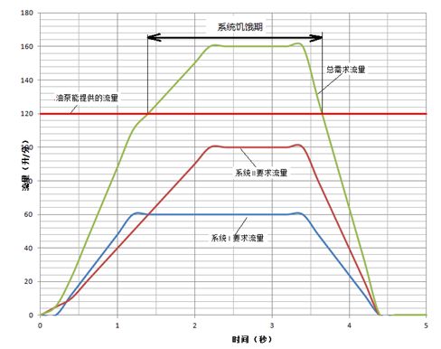 1:系統(tǒng)可以提供飽合流量,用前置式壓力補(bǔ)償,不論回路的負(fù)載壓力如何變化或其他回路的負(fù)載壓力變化,回路的控制流量不變,如下圖;