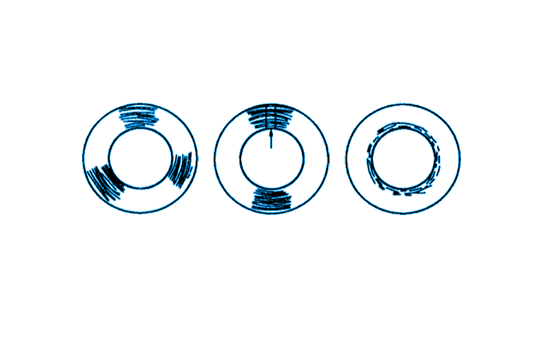 如果截面變形,就會(huì)有明顯的亮點(diǎn)或不均勻磨合的痕跡.這種變形是由于傳動(dòng)彈簧、?壓蓋和密封箱中靜密封環(huán)(油封密封件)裝配不當(dāng)所造成,也有幾率可能是貯存不當(dāng)或配件結(jié)構(gòu)不適配所造成的.
