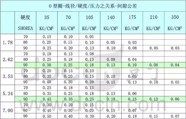(1)O型圈硬度、工作壓力、間隙公差之關(guān)系