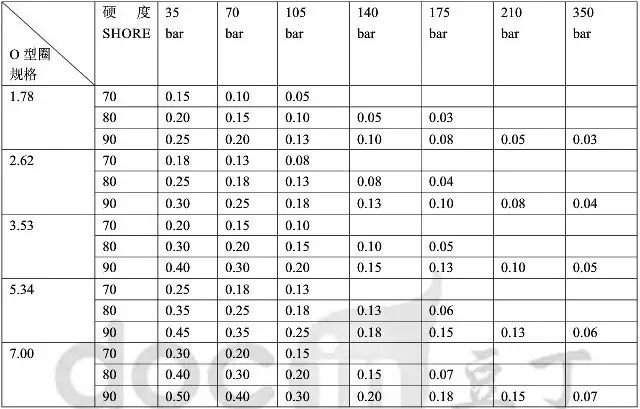 (2)O型圈-線徑/硬度/壓力之關(guān)系-間隙公差