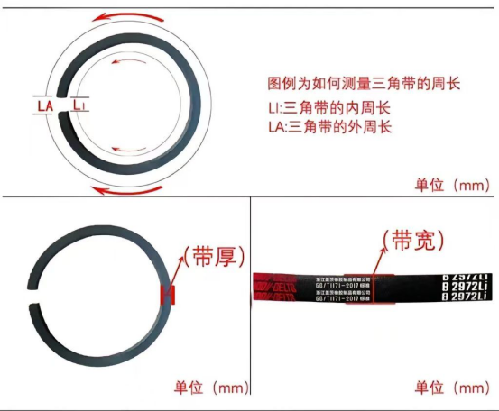 測準(zhǔn)尺寸:用軟尺測量皮帶內(nèi)周長(如圖),避免誤差導(dǎo)致打滑或斷裂。