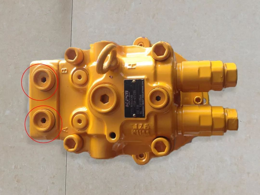 1、先檢查一下回轉(zhuǎn)馬達上的安全溢流閥。