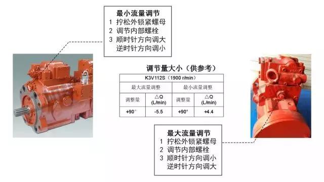 在出現(xiàn)故障后,大可不必驚慌,首先確認(rèn)液壓油是否及時更換,排除液壓油問題后,可以先嘗試微調(diào)液壓泵上的調(diào)節(jié)器。液壓泵的流量調(diào)節(jié),實(shí)際是通過調(diào)節(jié)器內(nèi)的伺服活塞改變泵的斜盤傾角,從而改變柱塞行程,來改變流量的。